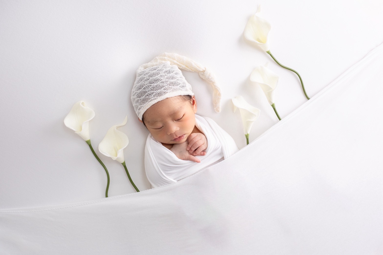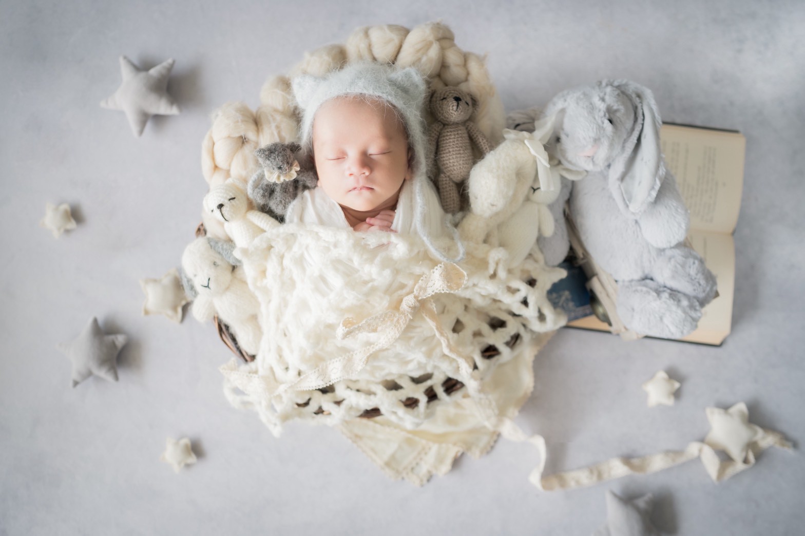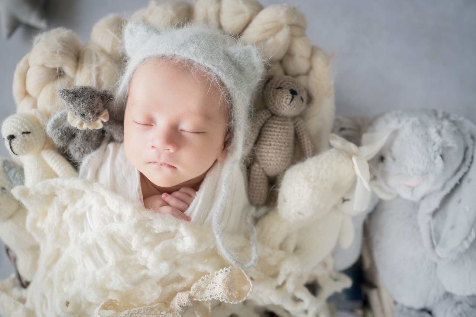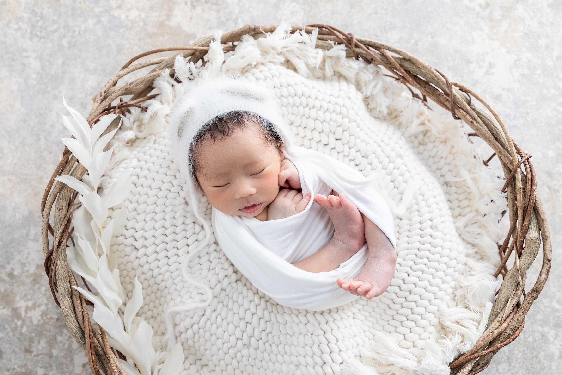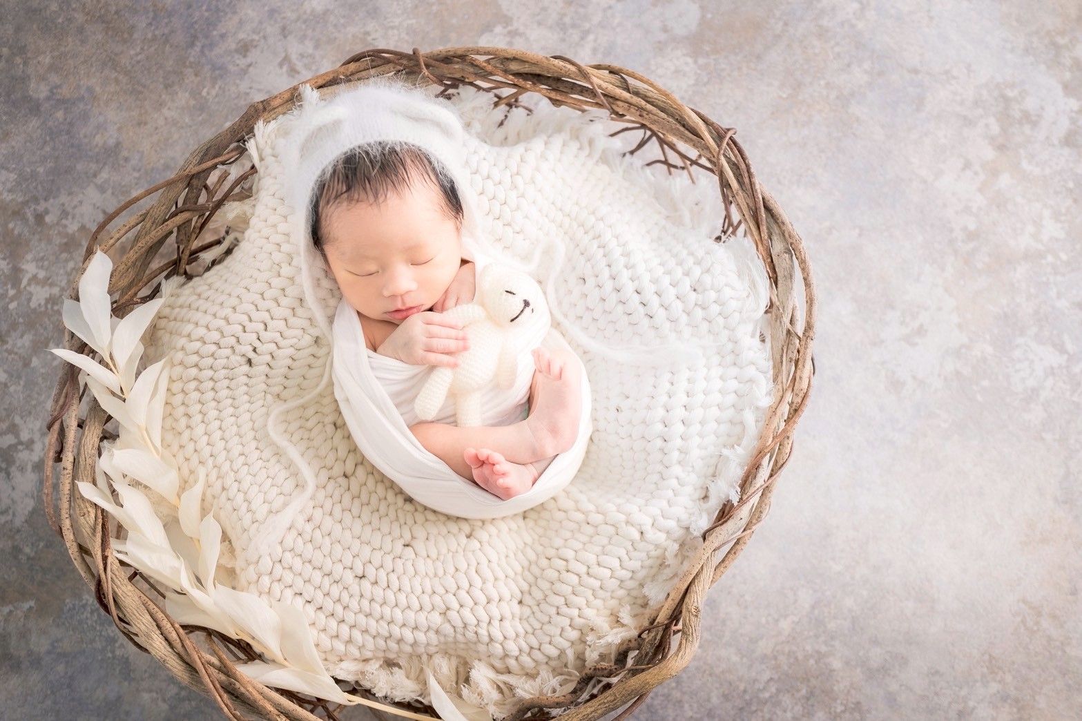 スタンダードプラン(ママとのツーショット+ご家族撮影付き) おくるみ3パターン*かご+背景布の両方